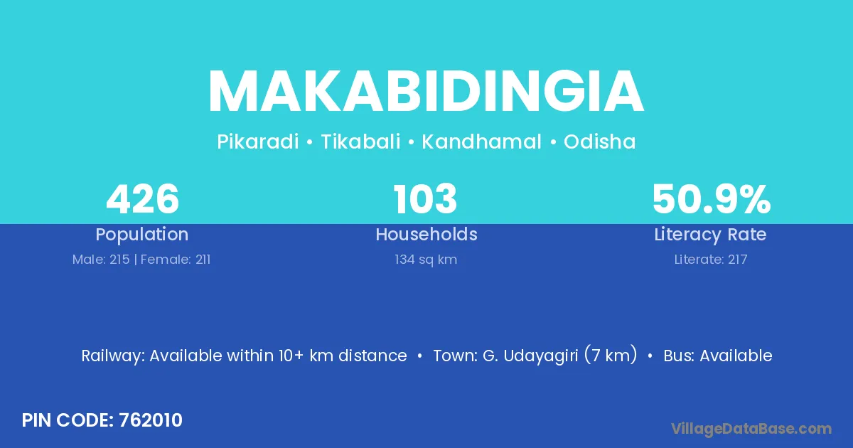 G. Udayagiri (7 km) is the nearest town to Makabidingia village for major economic activities and is located approximately 7 km away.