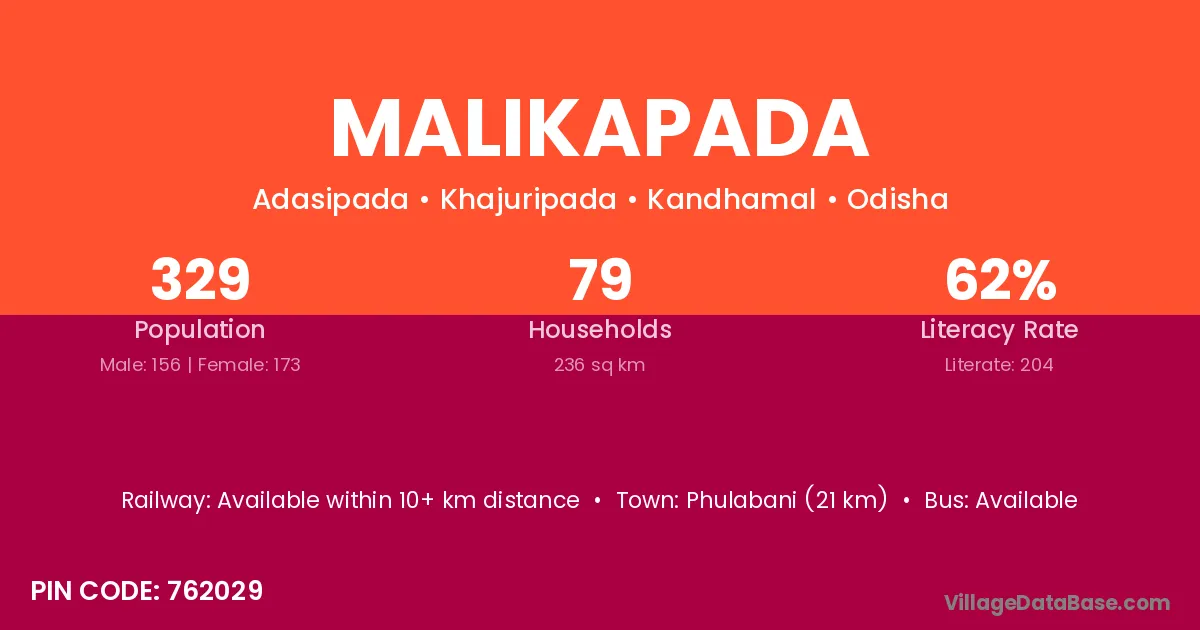 Malikapada village is located in the Tikabali Tehsil of the Kandhamal district in Odisha .