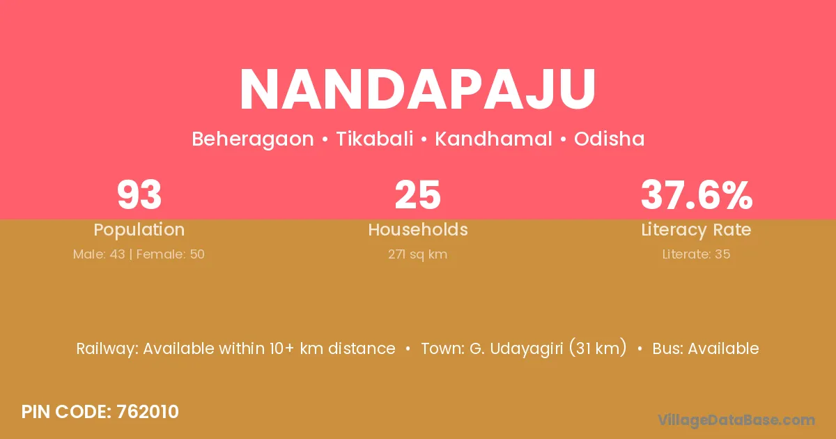 Nandapaju village has a total population of 93 people, of which 43 are males and 50 are females.