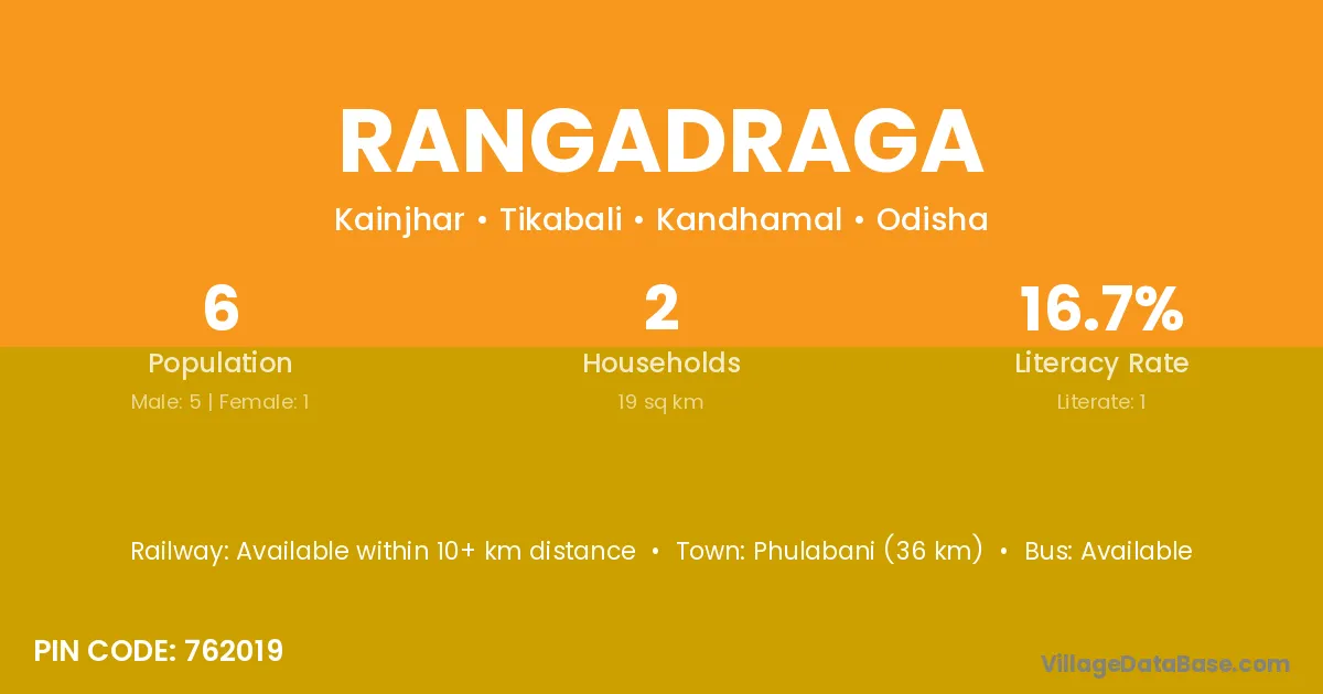 Phulabani (36 km) is the nearest town to Rangadraga village for major economic activities and is located approximately 36 km away.