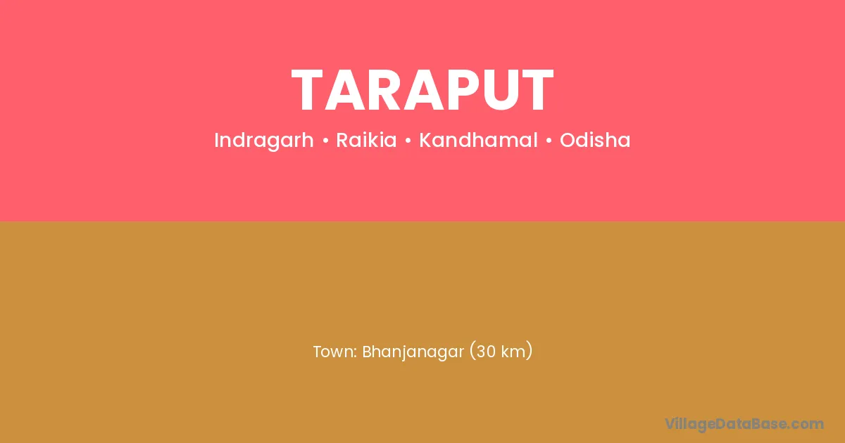 G. Udayagiri (28 km) is the nearest town to Taraput village for major economic activities and is located approximately 28 km away.