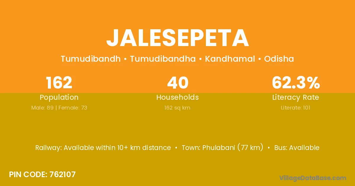 Jalesepeta village is located in the Tumudibandha Tehsil of the Kandhamal district in Odisha .