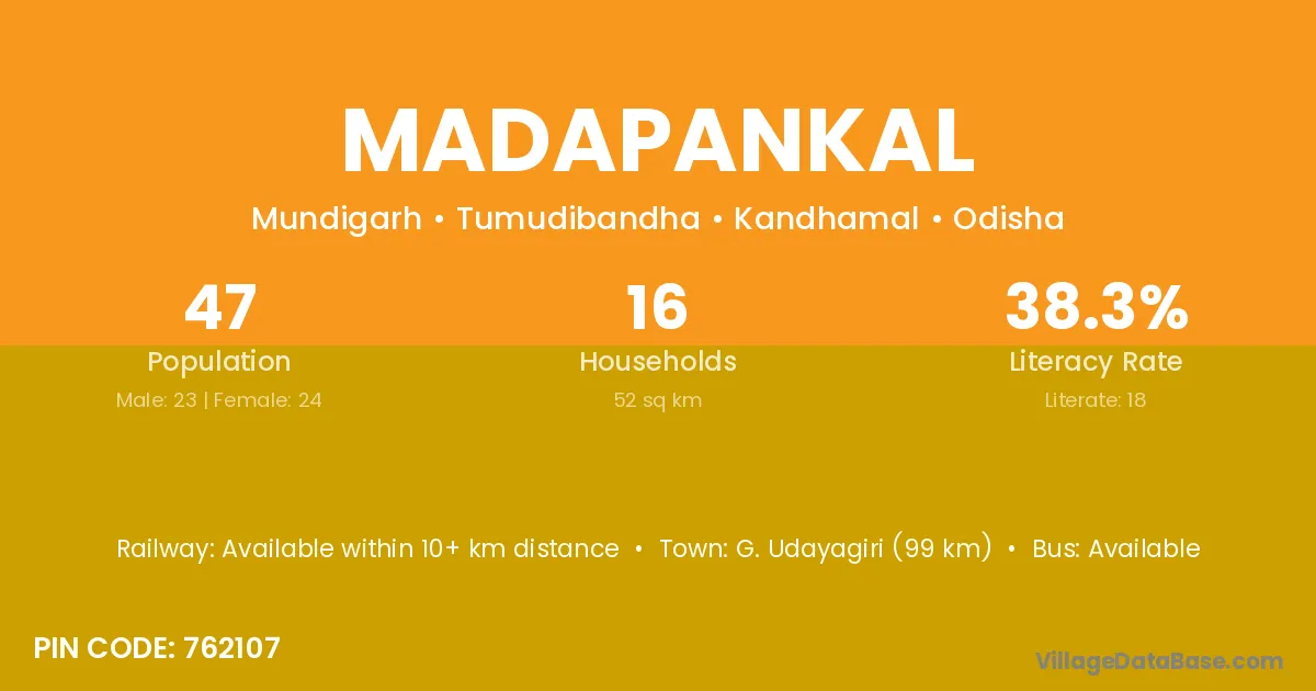 Madapankal village is located in the Tumudibandha Tehsil of the Kandhamal district in Odisha .