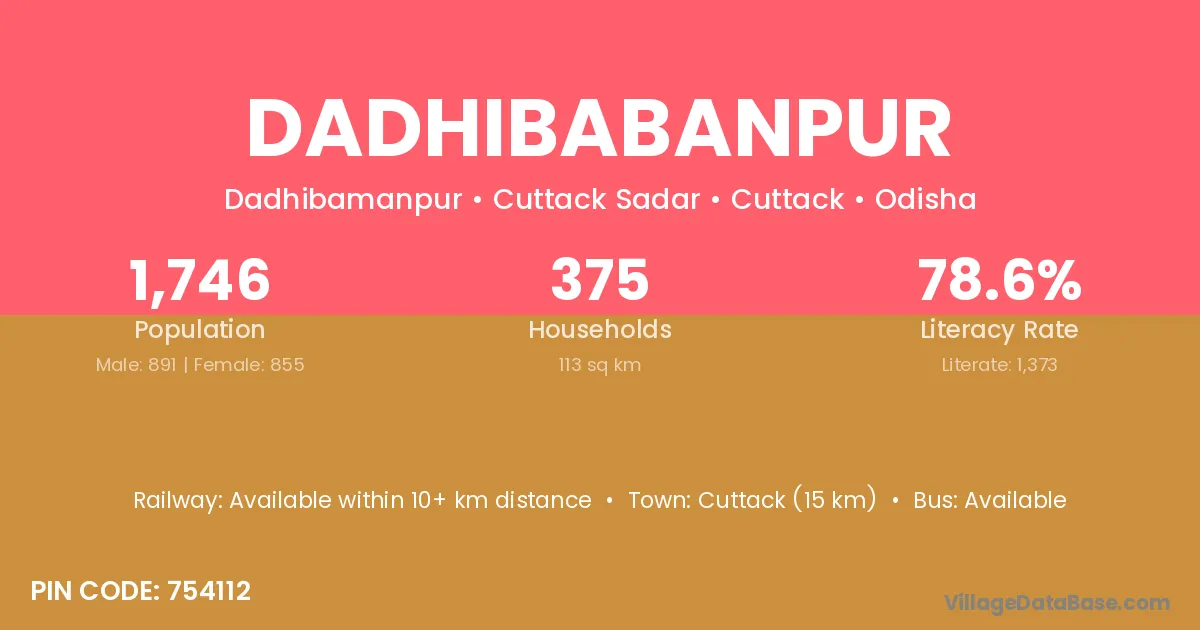 Jajapur (22 km) is the nearest town to Dadhibabanpur village for major economic activities and is located approximately 22 km away.