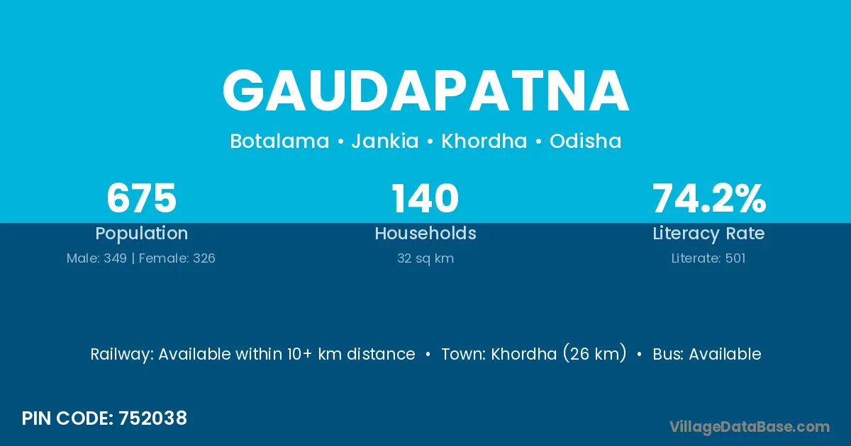 Pattamundai (19 km) is the nearest town to Gaudapatna village for major economic activities and is located approximately 19 km away.