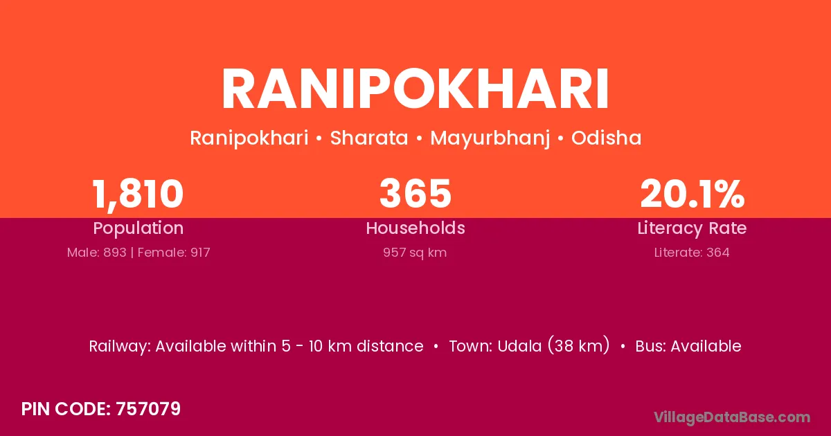 Pattamundai (21 km) is the nearest town to Ranipokhari village for major economic activities and is located approximately 21 km away.