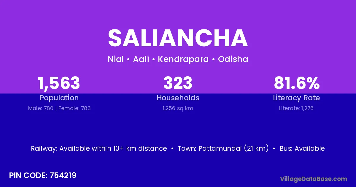 Pattamundai (21 km) is the nearest town to Saliancha village for major economic activities and is located approximately 21 km away.