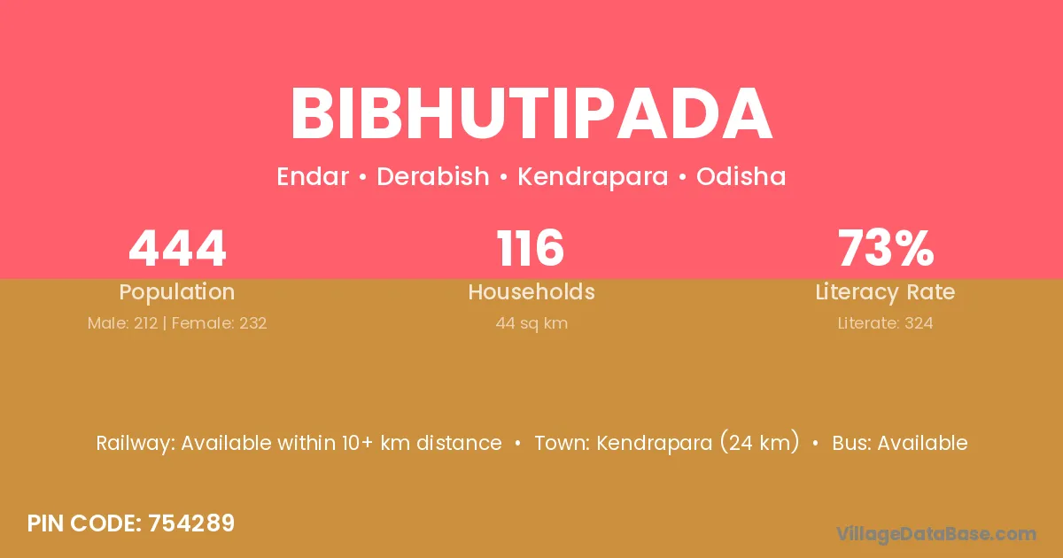 Kendrapara (24 km) is the nearest town to Bibhutipada village for major economic activities and is located approximately 24 km away.