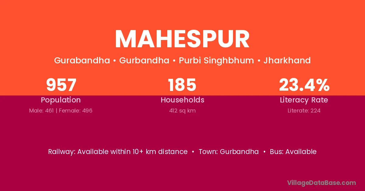The literacy rate of Mahespur village is 89.28%. Male literacy stands at 89.80% and female literacy at 88.70%.