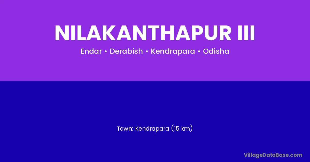 Kendrapara (15 km) is the nearest town to Nilakanthapur Iii village for major economic activities and is located approximately 15 km away.
