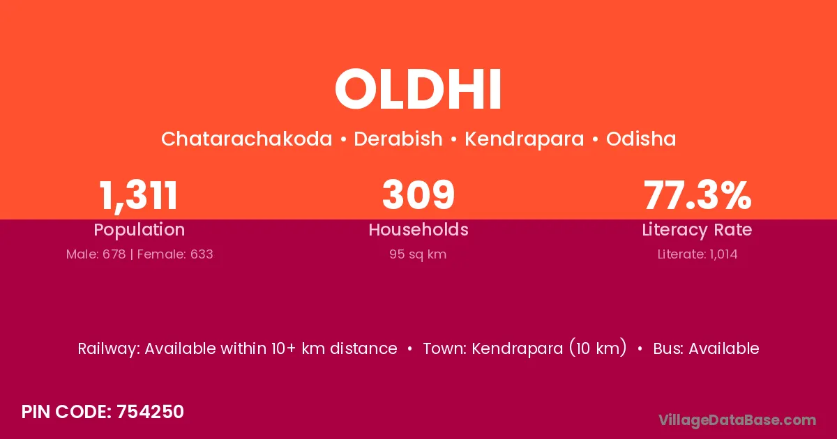 Kendrapara (10 km) is the nearest town to Oldhi village for major economic activities and is located approximately 10 km away.