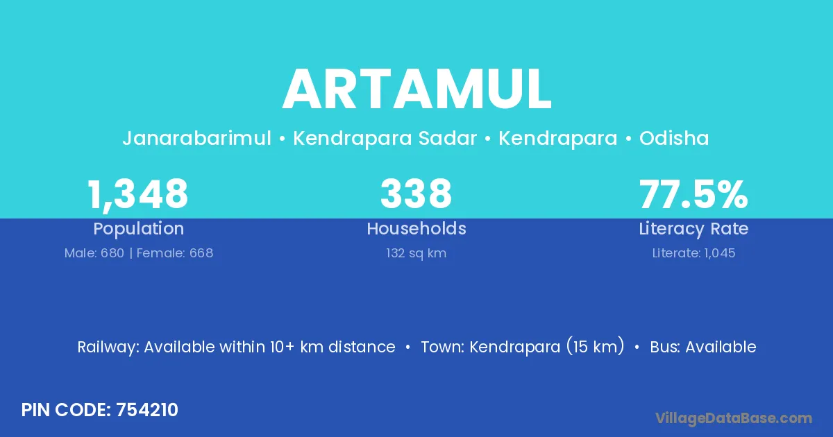 Kendrapara (15 km) is the nearest town to Artamul village for major economic activities and is located approximately 15 km away.