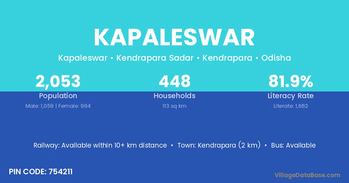 According to Census 2011 information, the village code of Kapaleswar village is 754211.