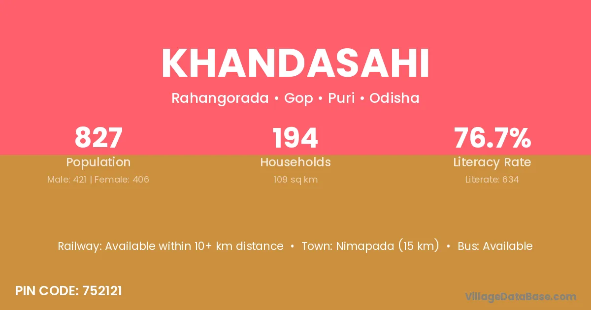 According to Census 2011 information, the village code of Khandasahi village is 754250.
