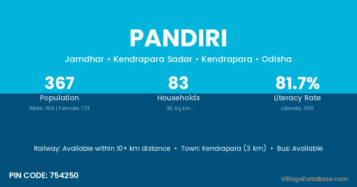 Kendrapara (3 km) is the nearest town to Pandiri village for major economic activities and is located approximately 3 km away.