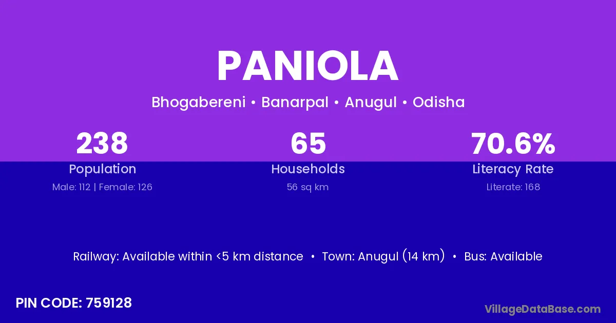 Paniola village has a total population of 414 people, of which 220 are males and 194 are females.