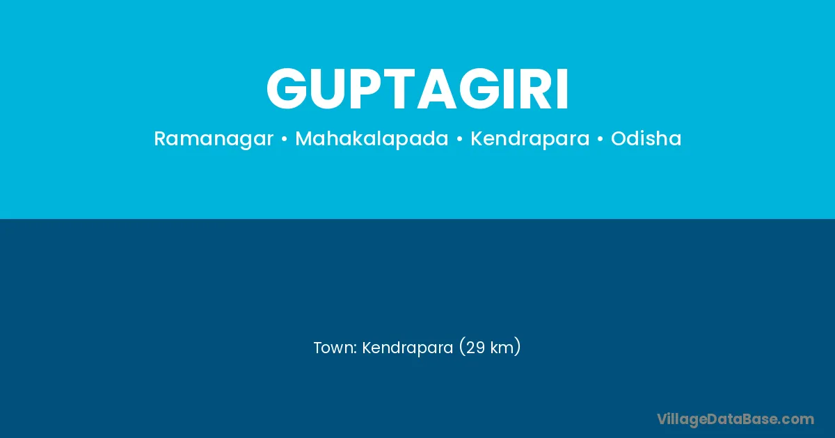 Kendrapara (29 km) is the nearest town to Guptagiri village for major economic activities and is located approximately 29 km away.