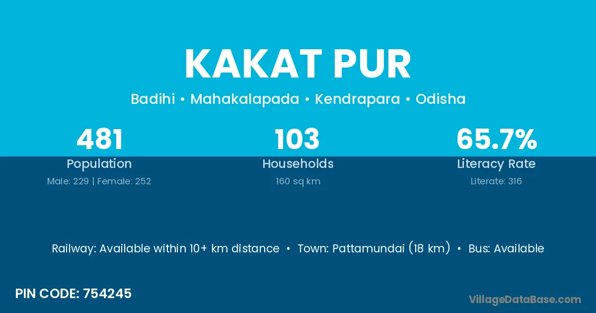 Pattamundai (18 km) is the nearest town to Kakat Pur village for major economic activities and is located approximately 18 km away.