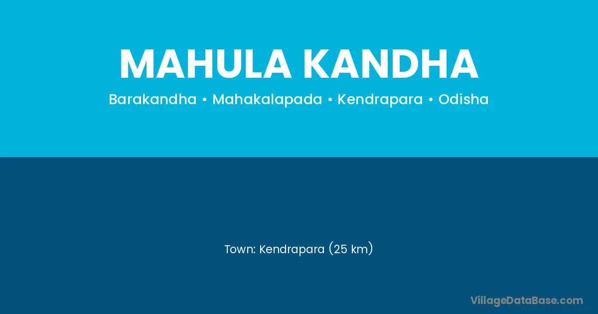 Kendrapara (25 km) is the nearest town to Mahula Kandha village for major economic activities and is located approximately 25 km away.