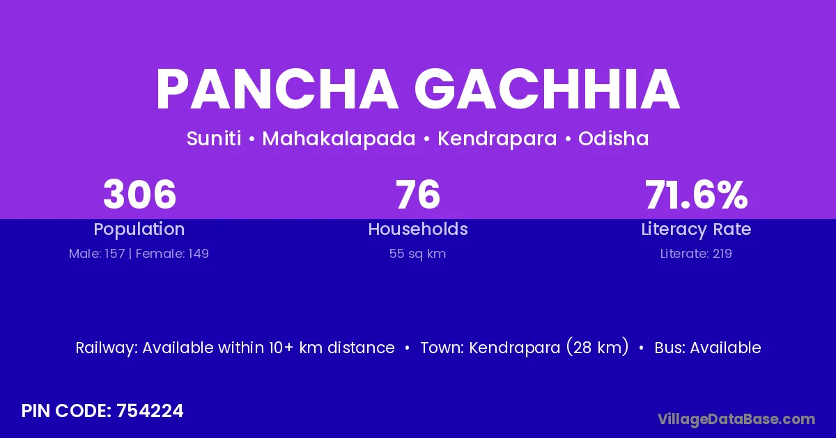 Pancha Gachhia village has a total population of 306 people, of which 157 are males and 149 are females.