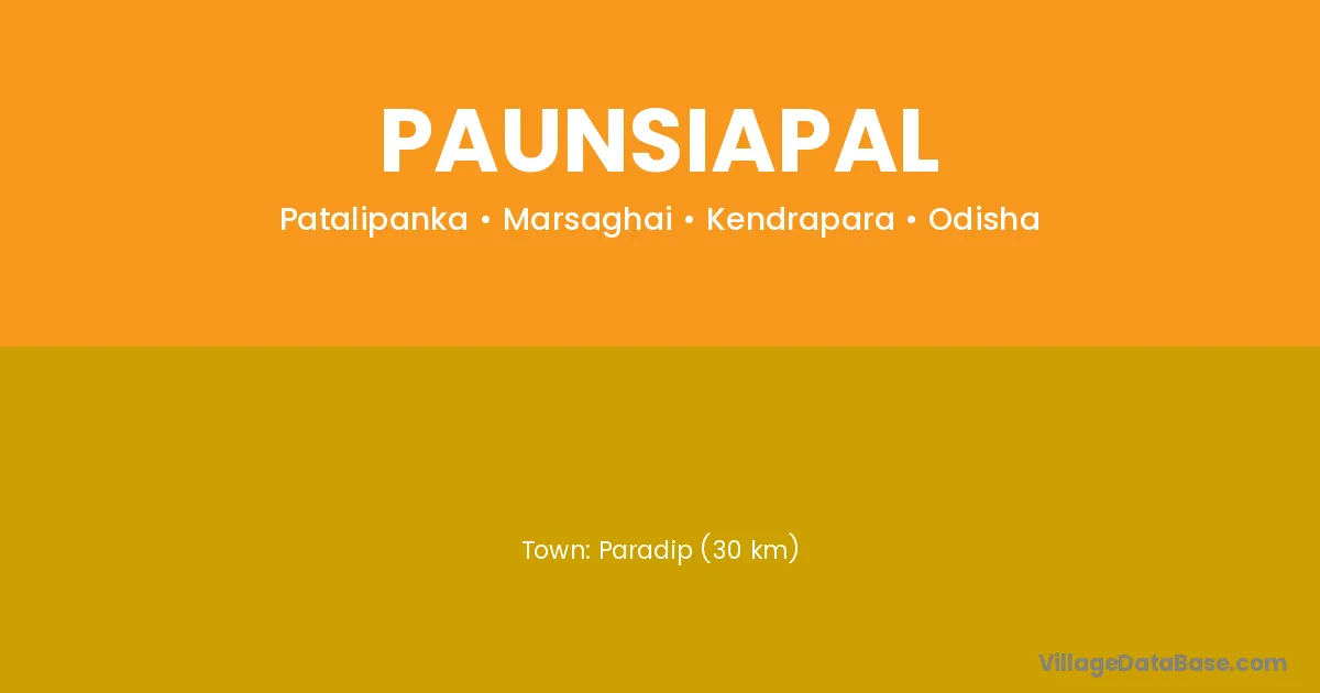 Paradip (30 km) is the nearest town to Paunsiapal village for major economic activities and is located approximately 30 km away.