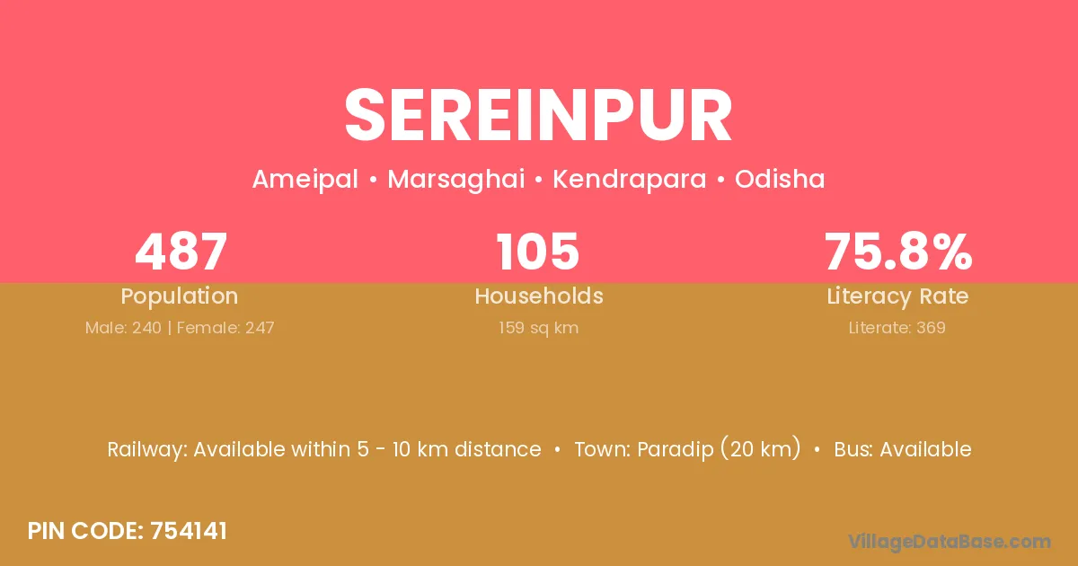 Paradip (20 km) is the nearest town to Sereinpur village for major economic activities and is located approximately 20 km away.