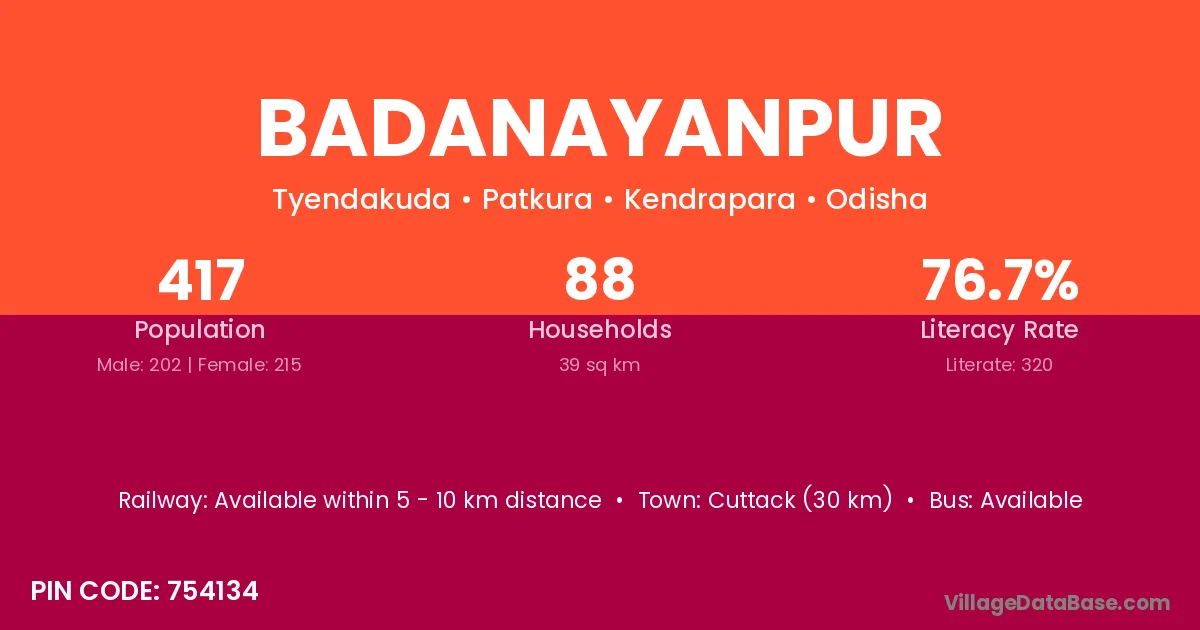Cuttack (30 km) is the nearest town to Badanayanpur village for major economic activities and is located approximately 30 km away.