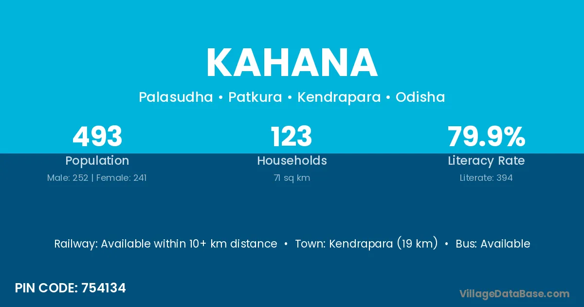Kendrapara (19 km) is the nearest town to Kahana village for major economic activities and is located approximately 19 km away.