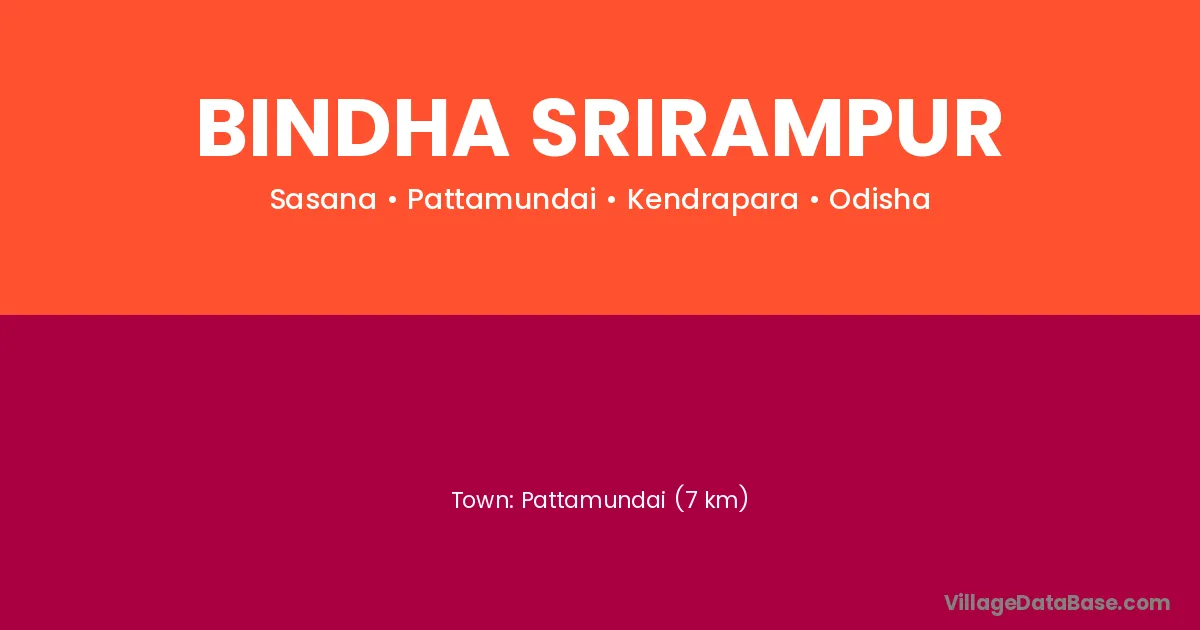 Pattamundai (7 km) is the nearest town to Bindha Srirampur village for major economic activities and is located approximately 7 km away.