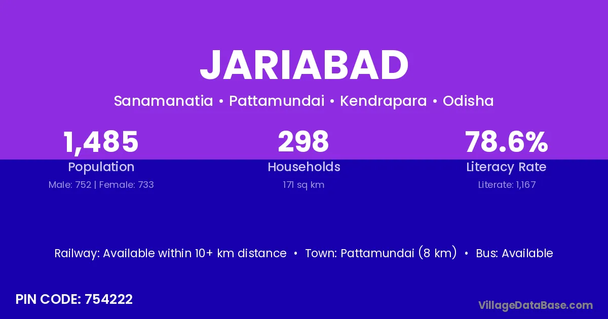 Pattamundai (8 km) is the nearest town to Jariabad village for major economic activities and is located approximately 8 km away.