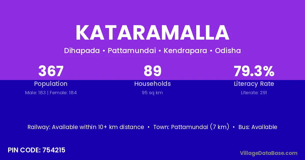 Pattamundai (7 km) is the nearest town to Kataramalla village for major economic activities and is located approximately 7 km away.