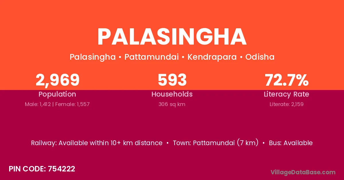 Pattamundai (7 km) is the nearest town to Palasingha village for major economic activities and is located approximately 7 km away.