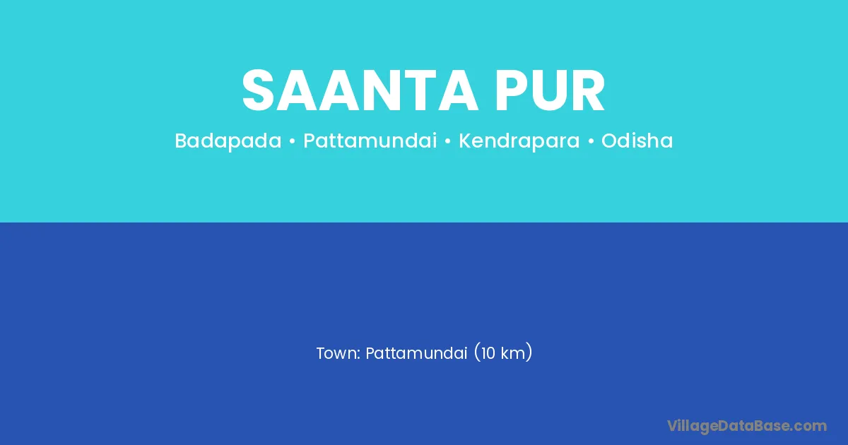 Pattamundai (10 km) is the nearest town to Saanta Pur village for major economic activities and is located approximately 10 km away.