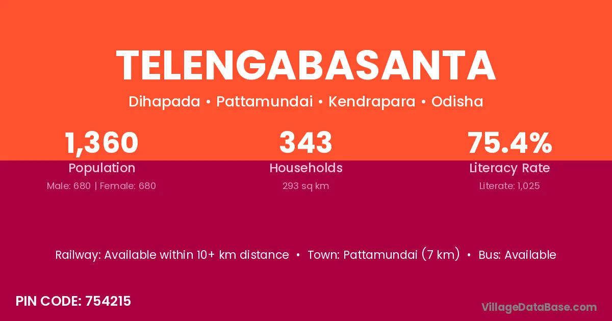 Pattamundai (7 km) is the nearest town to Telengabasanta village for major economic activities and is located approximately 7 km away.