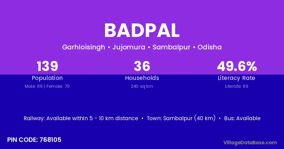 Pattamundai (36 km) is the nearest town to Badpal village for major economic activities and is located approximately 36 km away.