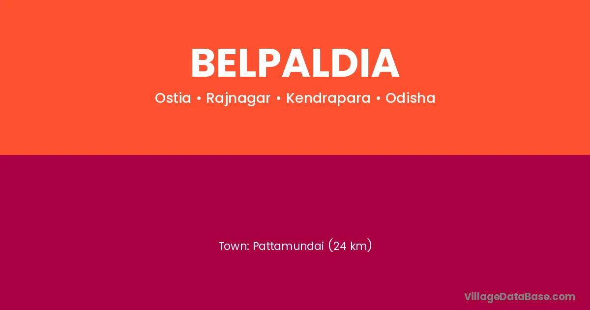 Pattamundai (24 km) is the nearest town to Belpaldia village for major economic activities and is located approximately 24 km away.