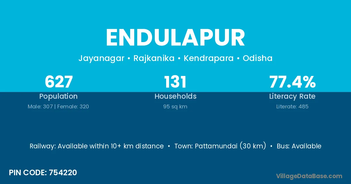 Pattamundai (19 km) is the nearest town to Endulapur village for major economic activities and is located approximately 19 km away.