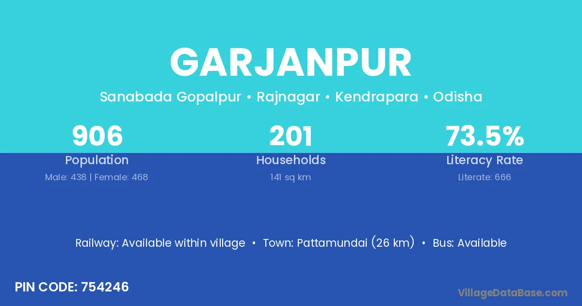 Pattamundai (26 km) is the nearest town to Garjanpur village for major economic activities and is located approximately 26 km away.