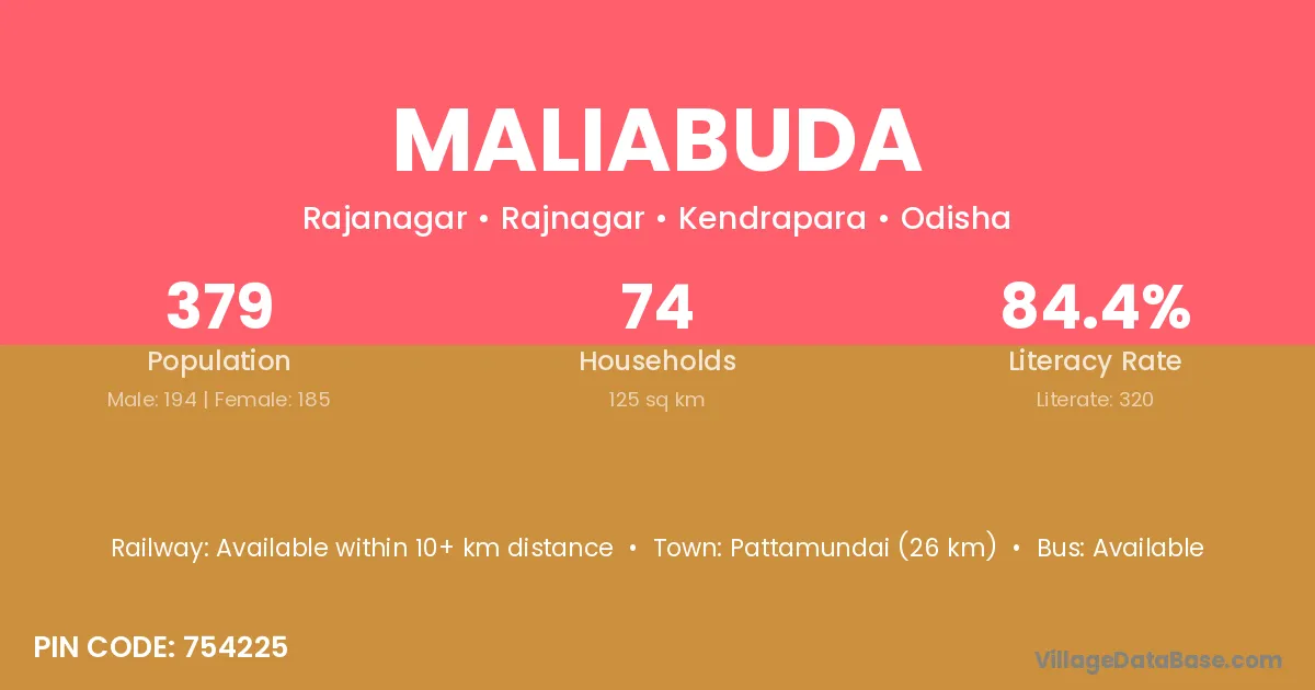 Pattamundai (26 km) is the nearest town to Maliabuda village for major economic activities and is located approximately 26 km away.