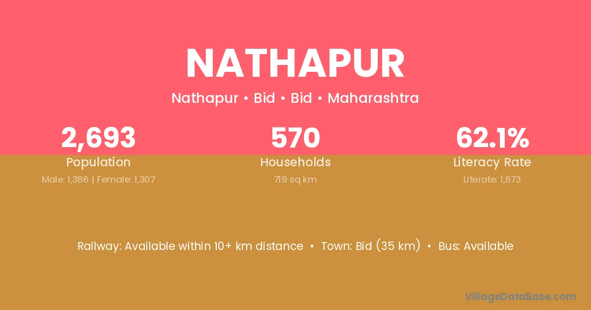 The literacy rate of Nathapur village is 78.21%. Male literacy stands at 88.93% and female literacy at 67.06%.