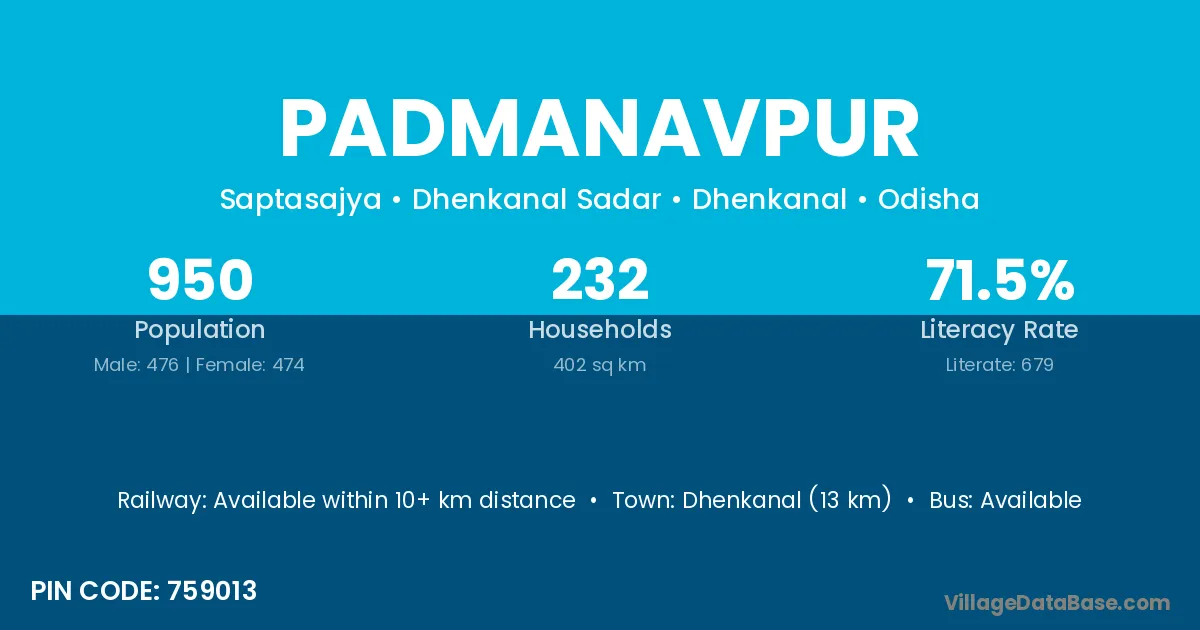 Pattamundai (38 km) is the nearest town to Padmanavpur village for major economic activities and is located approximately 38 km away.