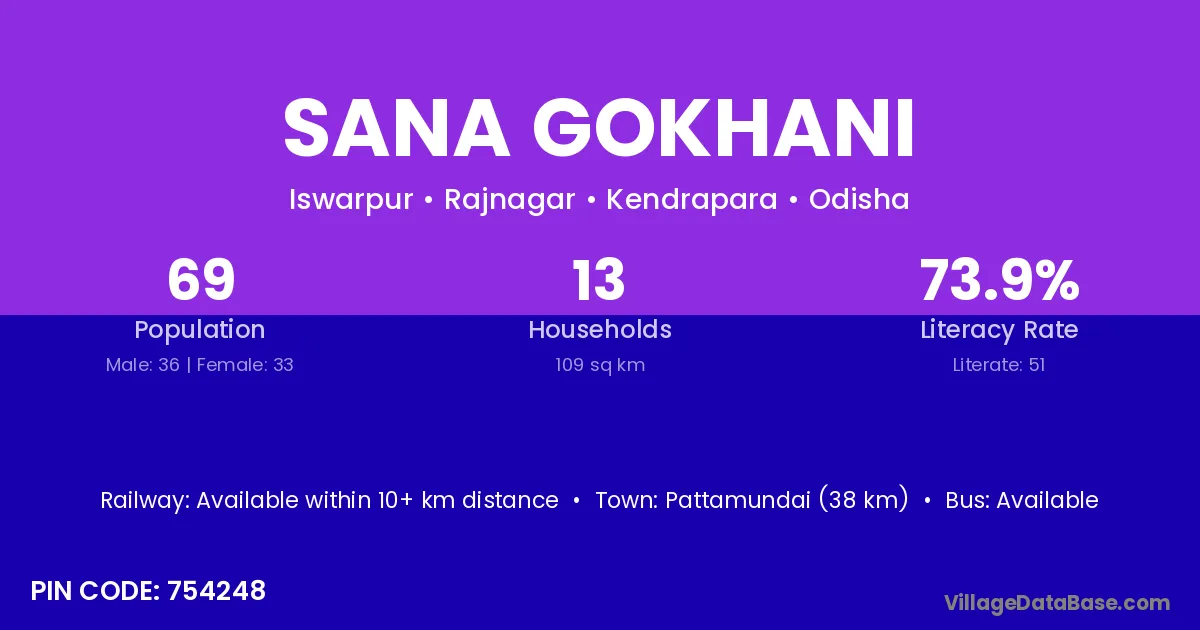 Pattamundai (38 km) is the nearest town to Sana Gokhani village for major economic activities and is located approximately 38 km away.