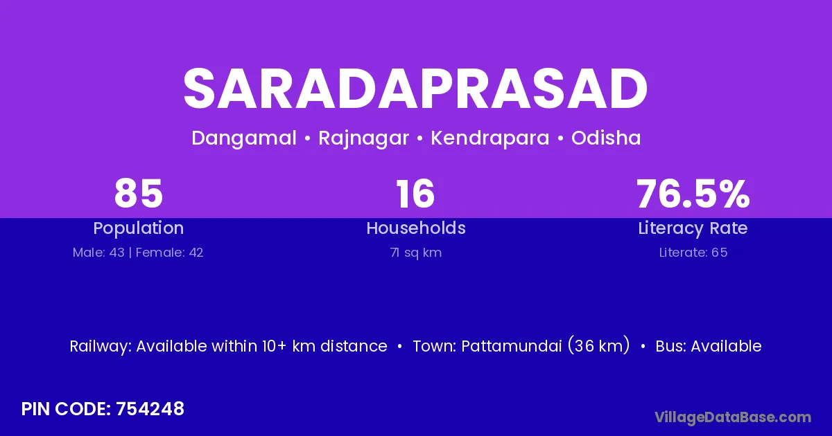 Pattamundai (36 km) is the nearest town to Saradaprasad village for major economic activities and is located approximately 36 km away.