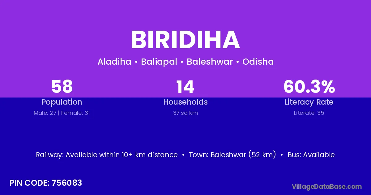 According to Census 2011 information, the village code of Biridiha village is 758021.
