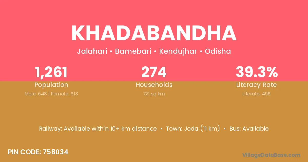 Joda (11 km) is the nearest town to Khadabandha village for major economic activities and is located approximately 11 km away.