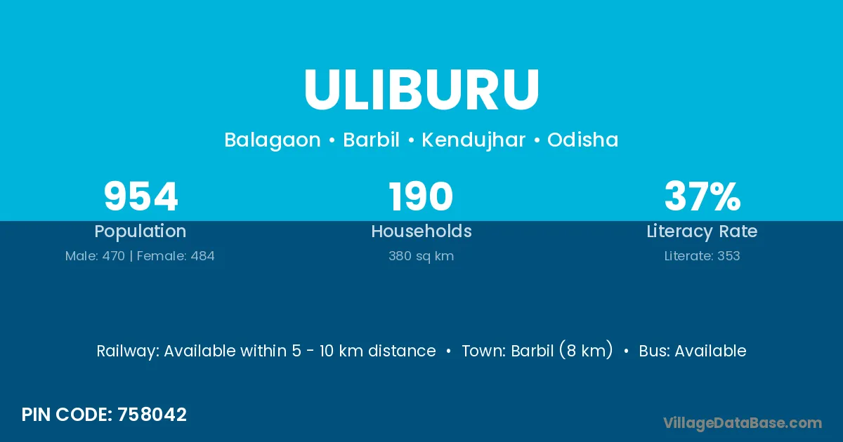 Barbil (8 km) is the nearest town to Uliburu village for major economic activities and is located approximately 8 km away.