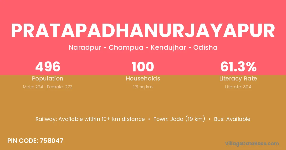 Joda (19 km) is the nearest town to Pratapadhanurjayapur village for major economic activities and is located approximately 19 km away.