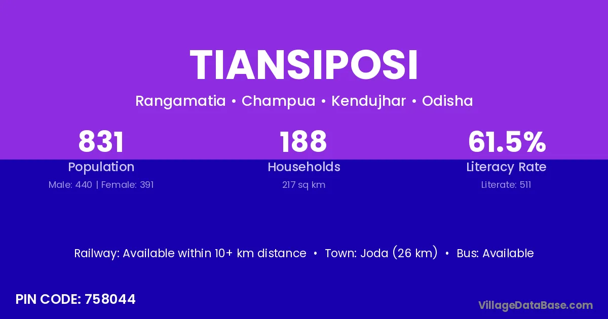 Tiansiposi village is located in the Champua Tehsil of the Kendujhar district in Odisha .