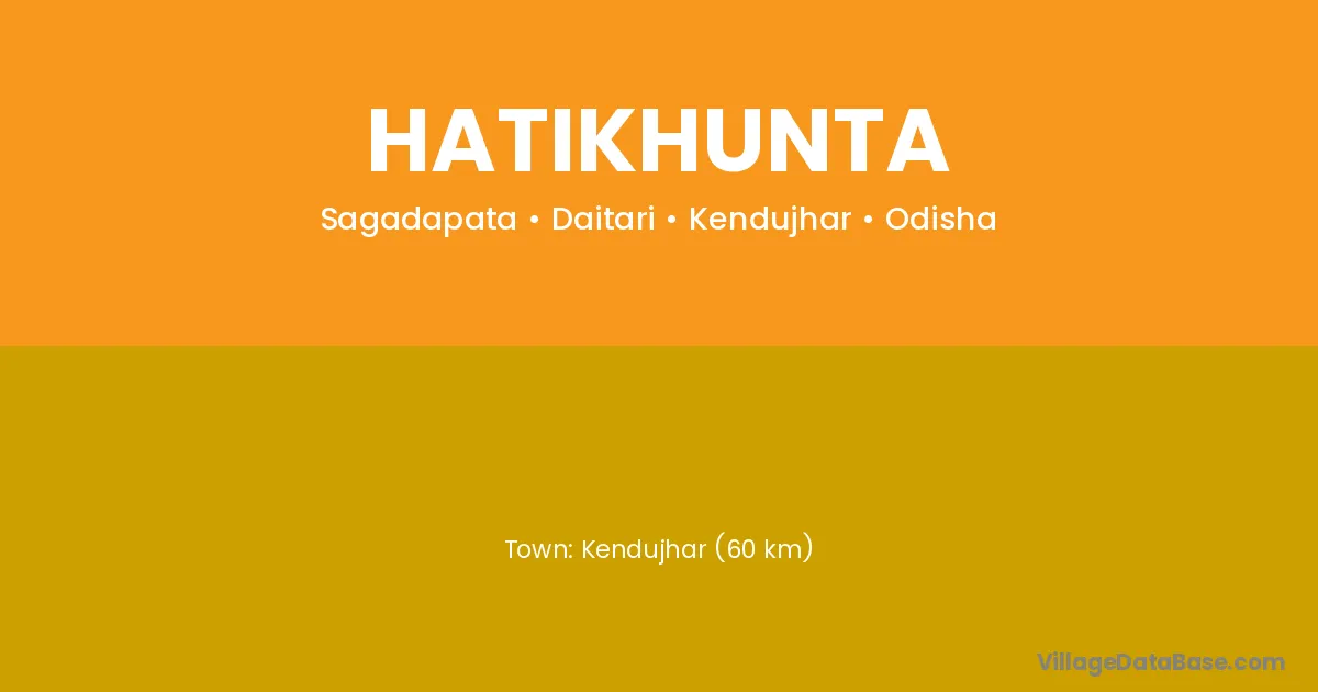 Hatikhunta village is located in the Daitari Tehsil of the Kendujhar district in Odisha .