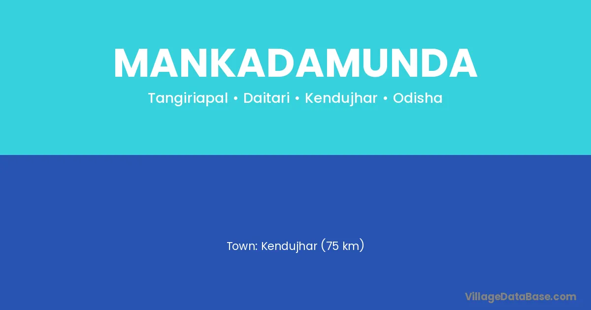 Mankadamunda village is located in the Daitari Tehsil of the Kendujhar district in Odisha .